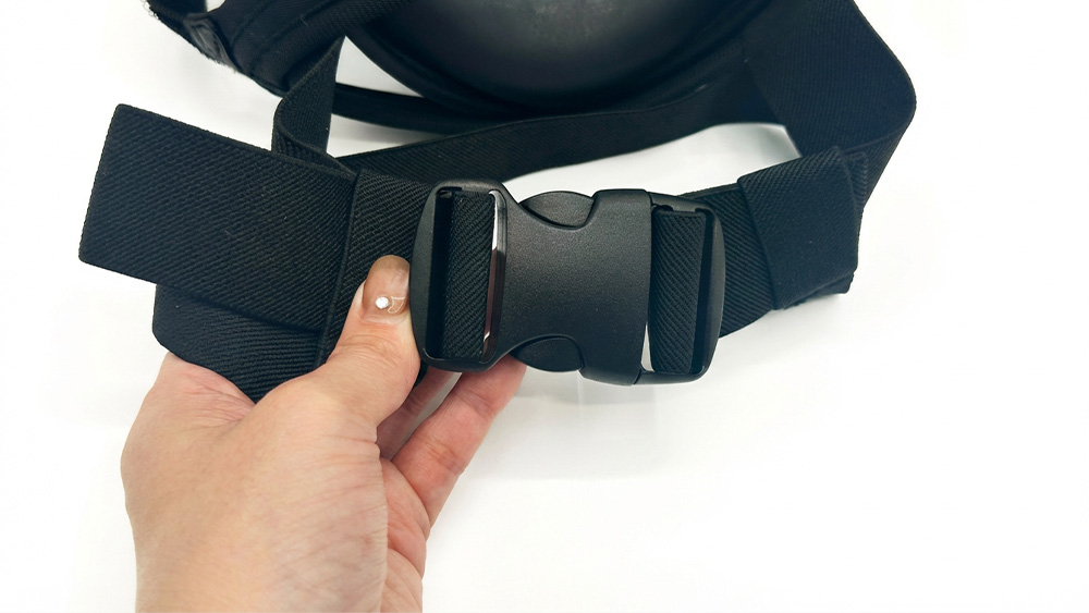 VEKTAは、首の後ろでベルトを「ガチャン」と嵌める仕様になっています。