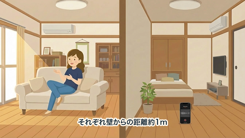 私が感じた結論から言うと、同じ部屋で約1mの距離だと、さすがに何を話しているかは聞き取れてしまいます。