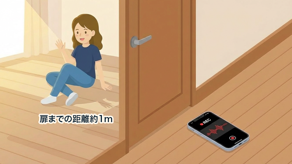 扉から約1m離れた位置から、扉越しにどの程度声が聞こえるかを確認してみました。