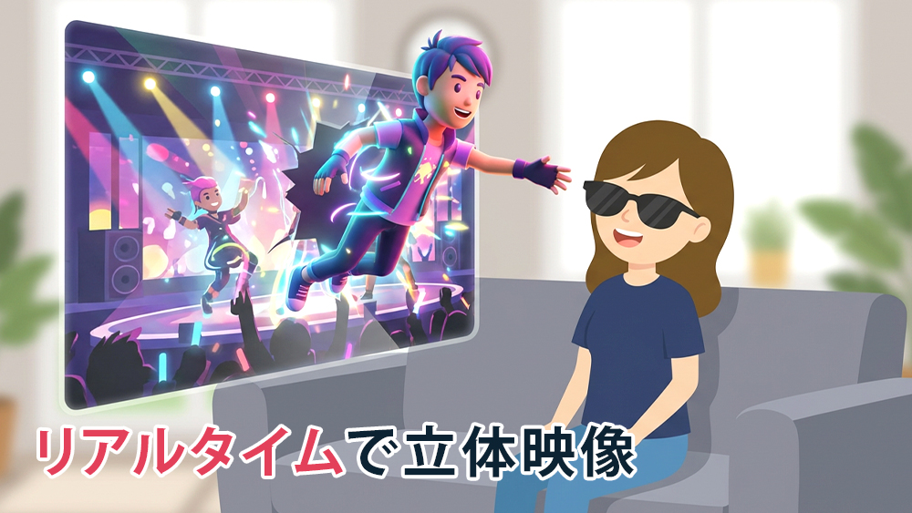 仕組みとしては、Immersive 3DのアプリやSpaceWalkerアプリ側で、動画の1フレームごとにAIが奥行き情報を推定し、左右の目用の映像をリアルタイム生成しています。