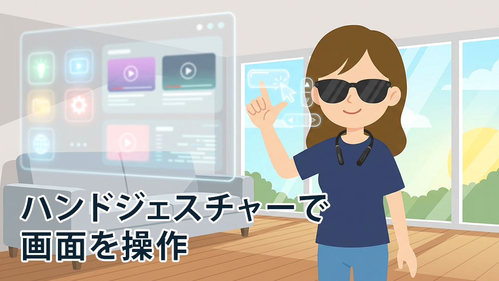 本来であれば、スマホやコントローラー、マウス使って、アプリを選んだり、再生ボタンを押したり、戻る操作をしたり…という形になりますが、ハンドジェスチャーを使えば、そうした「手元のデバイス操作」をかなり減らせます。