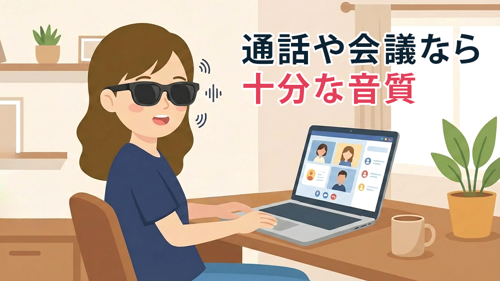 正直なところ、「グラスにマイクを内蔵っていっても、おまけ程度なんだろうな」と音質にはあまり期待していなかったのですが、実際に録音してみると通話やオンライン会議ならまったく問題なく使えるレベルで、いい意味で期待を裏切られました。